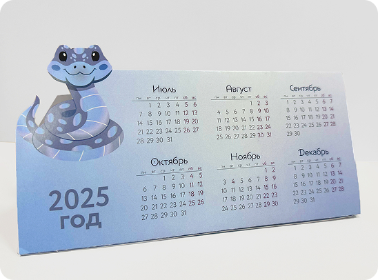 настольные календари с устойчивой треугольной конструкцией, изготовленные на плотной бумаге или картоне, с возможностью дополнительной обработки и декора.